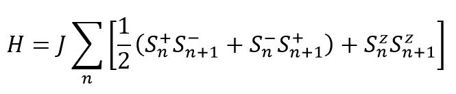 后来,高温超导与中子散射为低维材料的研究带来了新的活力。一维自旋 S = 1/2的海森堡模型,是描述低维量子磁性的重要范例。比如,在加横场的准一维反铁磁材料 BaCo2V2O8 中观察到了 E8 粒子 [4]。各向同性的海森堡模型的哈密顿量为:
