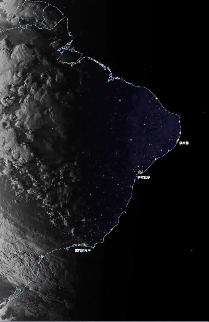 “黎明星”在2021年10月17日20:18(世界时)黄昏时刻拍摄到的一轨卫星图像,卫星正飞越南美洲大陆
