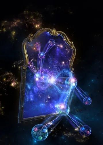 正反科西超子级联衰变演示图:如果物质和反物质遵循相同的物理法则,科西超子与反科西超子的衰变应该是镜像对称的,只是空间坐标是相反的。镜像之间纽带连接表示正反超子的量子关联。
