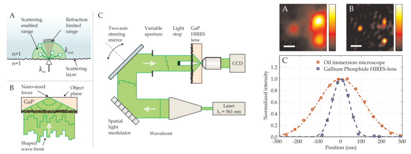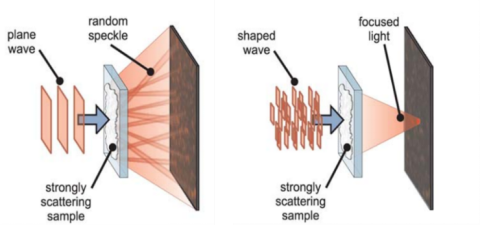2007年,荷兰科学家A.P.Mosk的一篇“Focusing coherent light through opaque strongly scattering media”拉开了光透过散射介质后光场调控的序幕,从此国内外很多学者都开始了相关的研究工作。2010年,Mosk发表在Nature Photonics上的“Exploiting disorder for perfect focusing”再次引起轰动,主要讲述的是利用光场调控的方法,突破原透镜衍射极限10倍的重聚焦。