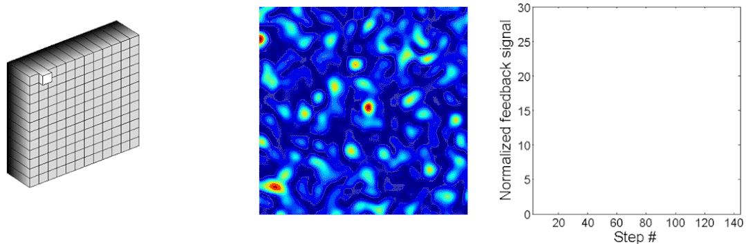 读到这里,应该意识到:传输矩阵是散射介质的数学表示形式,得到传输矩阵,就意味着聚焦和成像没有问题了。那如何获得传输矩阵呢?答案是测量,似乎目前只有测量这一种办法,而且,测量很复杂,耗时很长。这说明测量只适用于静态散射介质,典型的像毛玻璃,而我们经常面对的云雾、烟尘、水和生物组织等具有时变特性的动态散射介质,如果不能实时测量,就意味着这种方法很难实用。于是,传输矩阵的高速测量方法也出现了,典型代表为法国Sylvian Gigan教授于2016年采用高速MEMS器件和FPGA方法实现了在生物组织中帧频上万次的调制,从而可以在短时间内获得生物组织的传输矩阵。