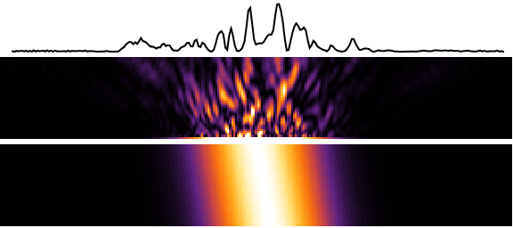 当点光源经过毛玻璃投射到观测屏上时,我们看到的将不是一个点,而是一块亮斑。根据光路可逆原理,这块亮斑上的每一个点反方向传播,经过毛玻璃后能够会聚到原先的点光源处。这个过程称为“时间反演”(Time Reversal)。如果我们把光换成雷达信号或者声信号,故事到这里就结束了。然而,我们面临的是光,光的探测都是基于光电效应的,也就是探测得到的是能量——振幅的平方,丢失了相位信息。
