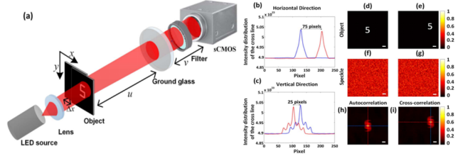 首先,我们应该看到的是散斑成像多采用单色光,甚至经常是频宽非常窄的激光,这是因为散斑具有非常强的光谱敏感性,光谱的些微变化就会引起散斑的变化,即散射介质是非常好的“色散”材料,只是这种色散是在更高维度上的进行的。因为这个特点,我们不得不牺牲太阳光这么明亮的自然宽谱光源,采用窄带滤波的方法,也就是加一片通常只有10 nm左右带宽的滤波片做成像实验,能量利用率很差。但是,事物都是具有两面性的,做光谱研究的科学家恰恰就利用了这一特点做出了具有皮米(pm)量级的高精度光谱仪。