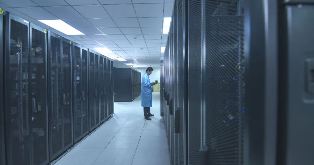 工作人员正在机房中调试量子通信设备。 图片来源:国盾量子