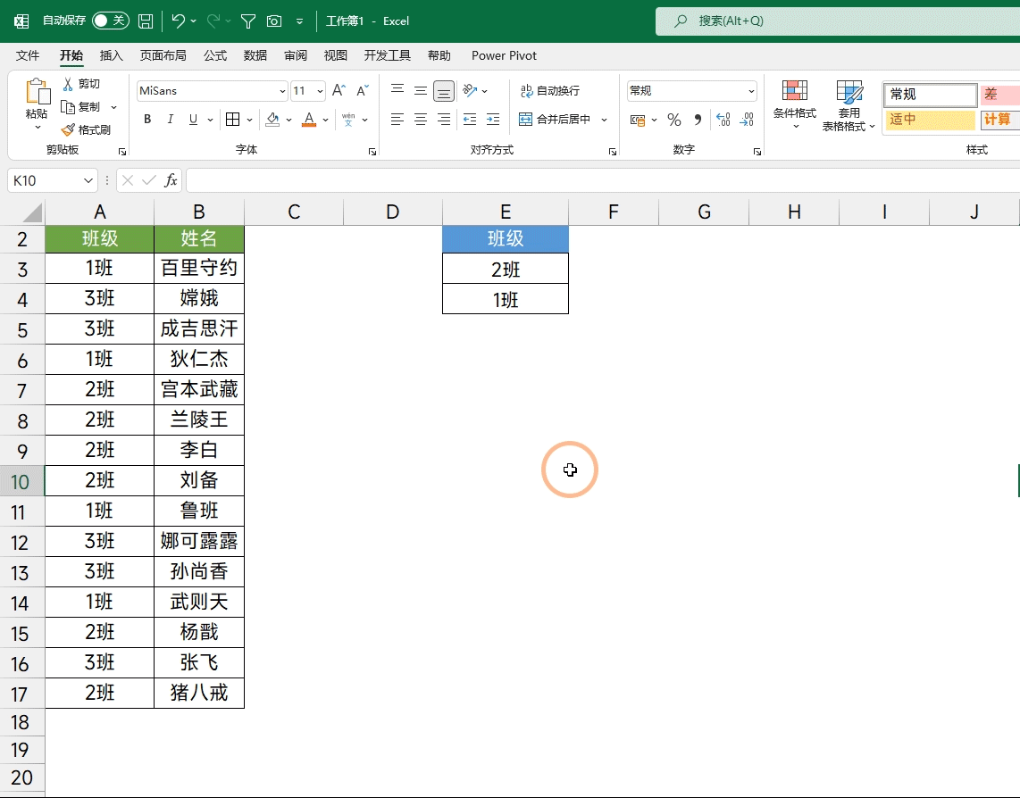 比如在这里,我们想要找到2班与1班对应的所有姓名,首先需要构建下查找的条件,就是班级这个表格,随后将【筛选方式】设置为在新的区域显示结果,只需将【列表区域】设置为筛选的数据区域,然后将【条件区域】设置为班级,【复制到】设置为一个单元格,然后点击确定即可