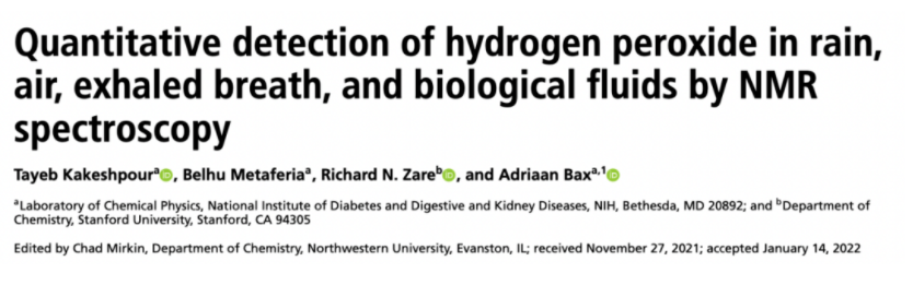 2月14日,Zare再次在PNAS发表论文,证明了核磁共振可以用来测试痕量的过氧化氢。