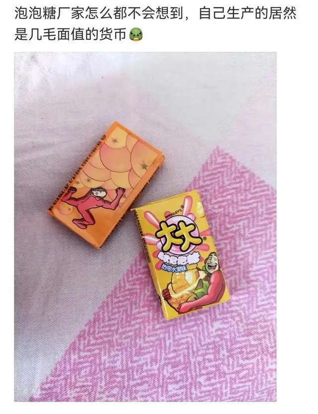 大大泡泡糖当年堪称“收银神器”,只要收银员遇到无法找零的情况,往往都会塞给消费者1、2颗泡泡糖。