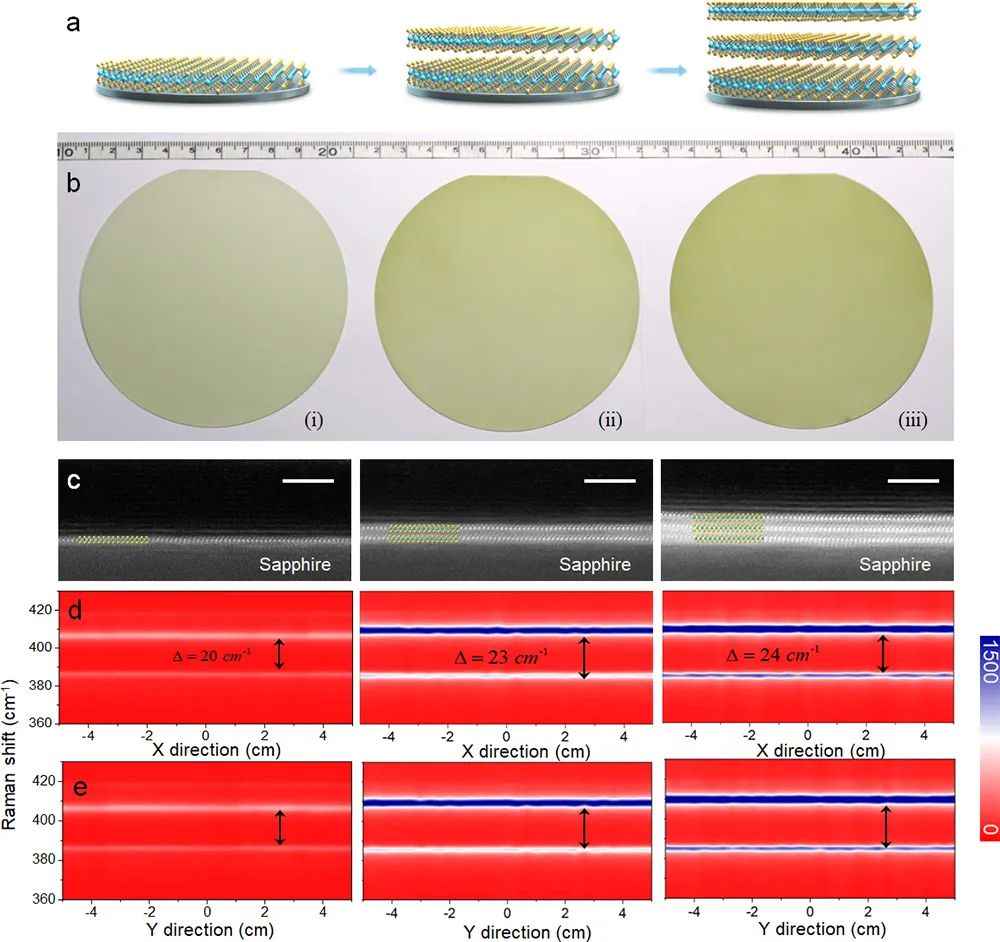 图1. 四英寸多层MoS2晶圆的逐层外延