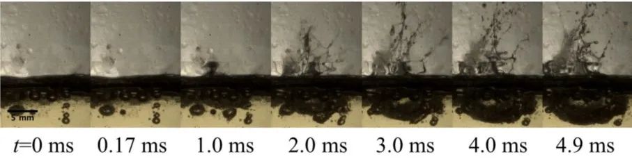 表面破裂后的动力学过程类似于鞭炮的爆炸,任何大的表面变形都可能产生强度较大的飞溅和射流。