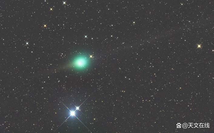 氐宿四在这张图中看起来是蓝色的,但通过观星者的天文望远镜,在日常报告中他们看氐宿四却是绿色的。图片来自nikomi网。