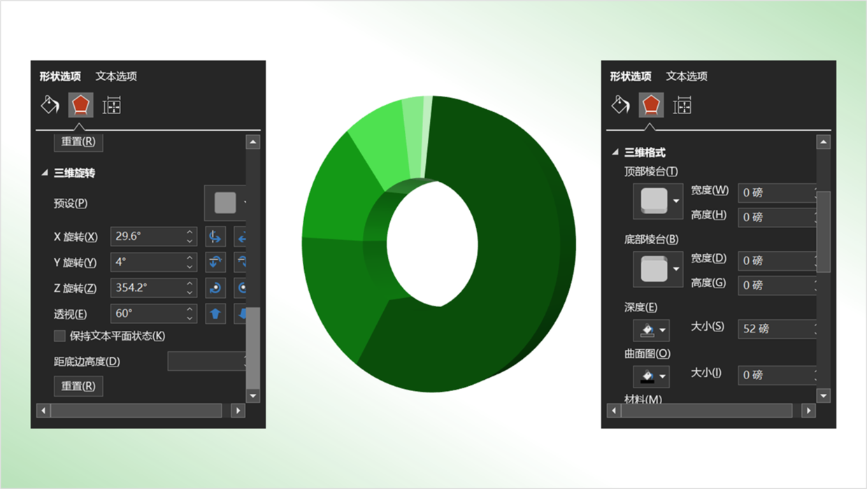 用PPT中的【三维旋转】和【三维格式】—【深度】即可实现,看一下。