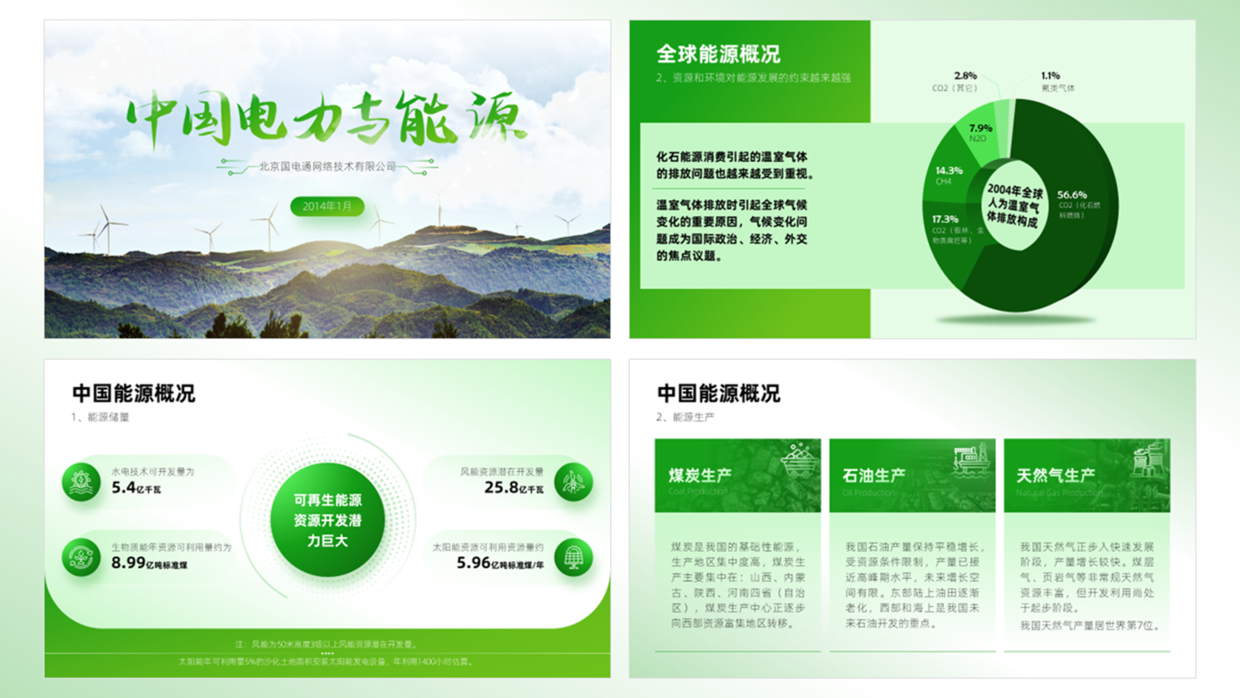 首先,根据主题内容,不难发现这是关于电力和能源主题,对于配色,取用绿色,更加匹配主题。