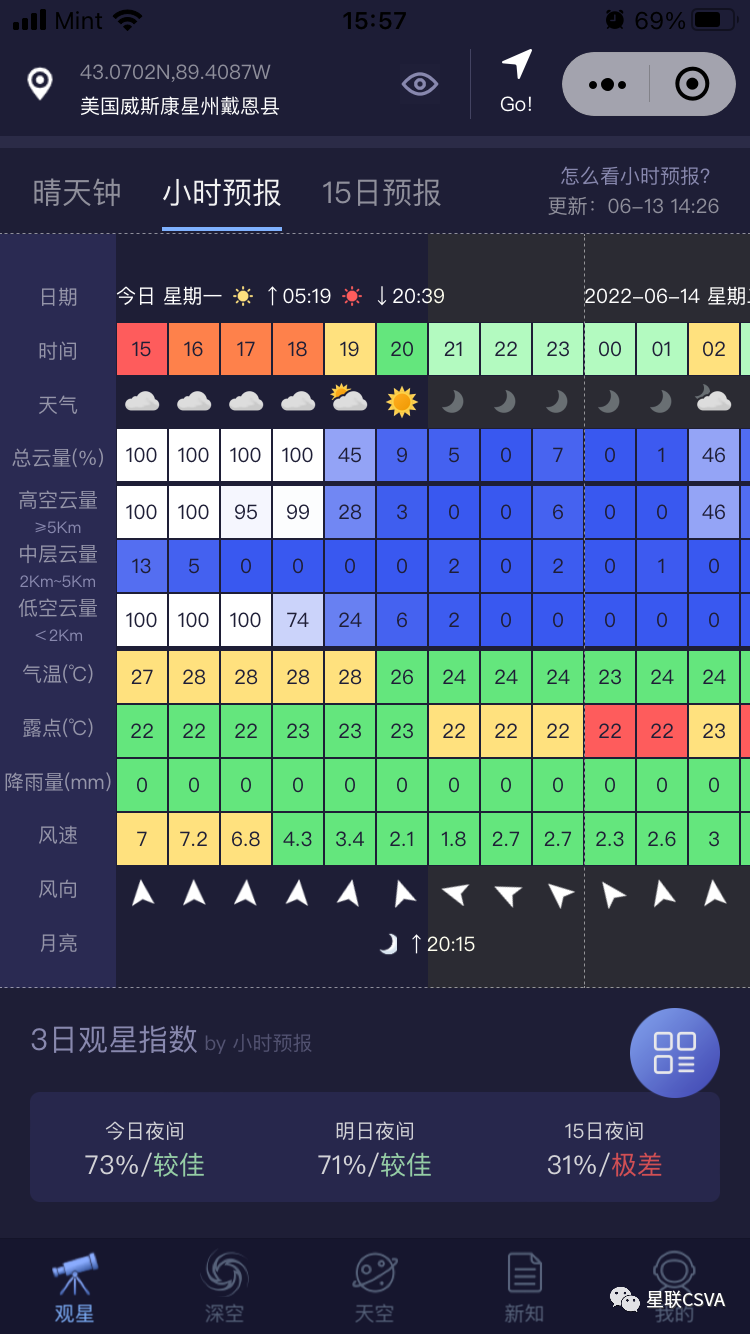如果仅看当地是否适合拍星,那么目前天文通小程序已经集合了三部分功能,可以完美用做参考。
