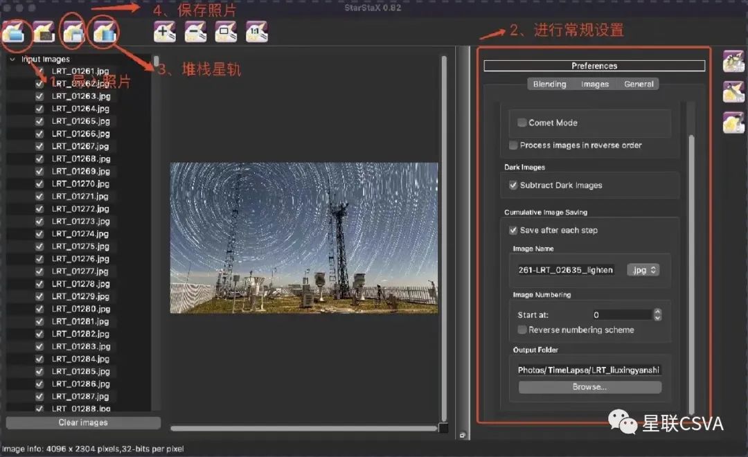 注意:照片不能导入RAW格式,但是可以导入TIFF、JPG格式。目前我习惯性在ACR中做基础的色彩、曝光调整,统一导出为JPG格式后,进StarStaX堆栈。这样整体操作下来,电脑不容易出现“卡死(无响应)”状态;导出照片、输出星轨,基本上也有进度条可以看。