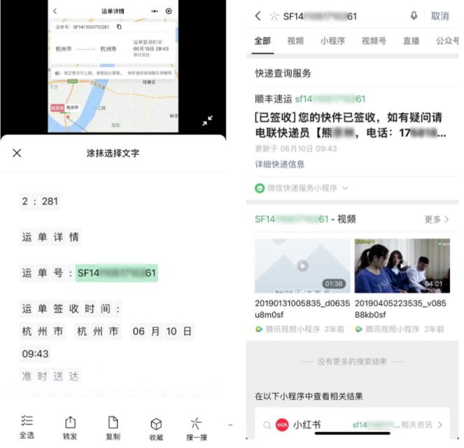 你直接摁住图片,选择“提取文字”,就可以将图片中包含的文字信息全部提出来。紧接着,你可以开始各种各样的下一步的操作,比如,直接进行复制、转发、收藏、搜索等;文字网址 、快递单号、手机号、地址、邮箱更是提供了快捷入口,一键打通。