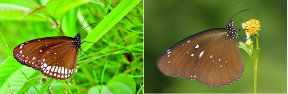 (左:幻紫斑蝶指名亚种 达娃供图 右:幻紫斑蝶 图片来源:百度百科)