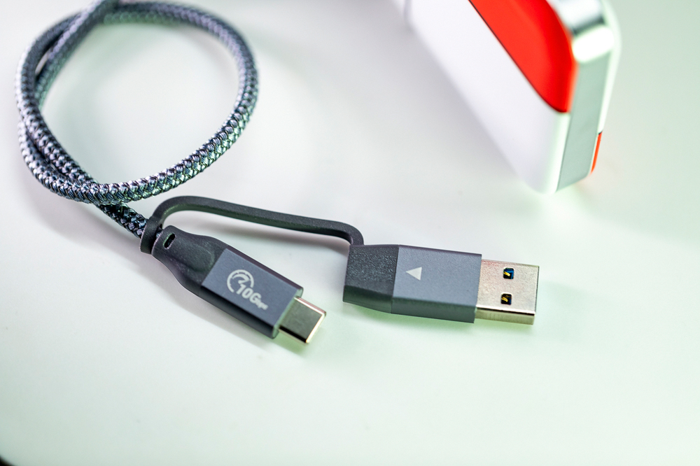 整个移动硬盘一共就一个Type-C接口,输出接口,支持正反插拔,数据传输采用 USB3.1 GEN2(10Gbps) 主控方案,支持UASP加速协议,内部采用高速NAND FLASH 颗粒,最高读取速度达1210MB/S,更快的完成数据传输需求。这些都使得它的传输速度加快了,对于数据的使用和传输更加快速和安全。