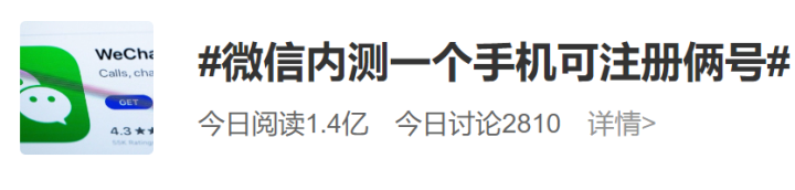 “微信内测一个手机可注册俩号”