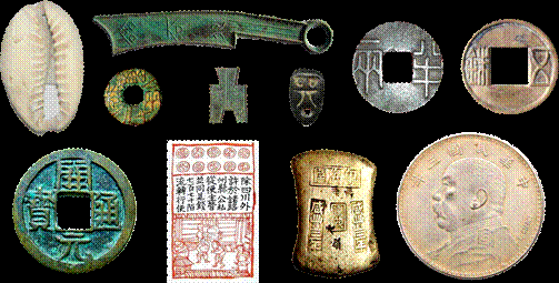 最早古代曾以海贝壳充当货币,称贝化(货)。已发现我国充当货币的海贝,大型的有虎斑宝贝、阿文绶贝;小型的有货币、拟枣贝等,以货币最常见。在先秦时期继而出现了以生产工具为原型的铸币,在一些手工业发达的区域,同时期货币,显示出与其文明程度相适应的方孔圆钱或圆孔圜钱。