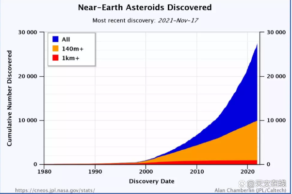 这些发现要归功于地球上和太空中的一组仪器,它们将部分或全部时间用于发现和编目小行星。这些发现中绝大多数是在上世纪90年代末之后才发现的,尽管在此之前,专家们就曾警告过小行星带来的威胁,但没有取得多少成功。