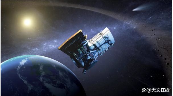 对新智慧星任务的描述,它在完成了天体物理学任务后开始寻找小行星。(图片来源:美国国家航空航天局/加利福尼亚大学/喷气推进实验室)