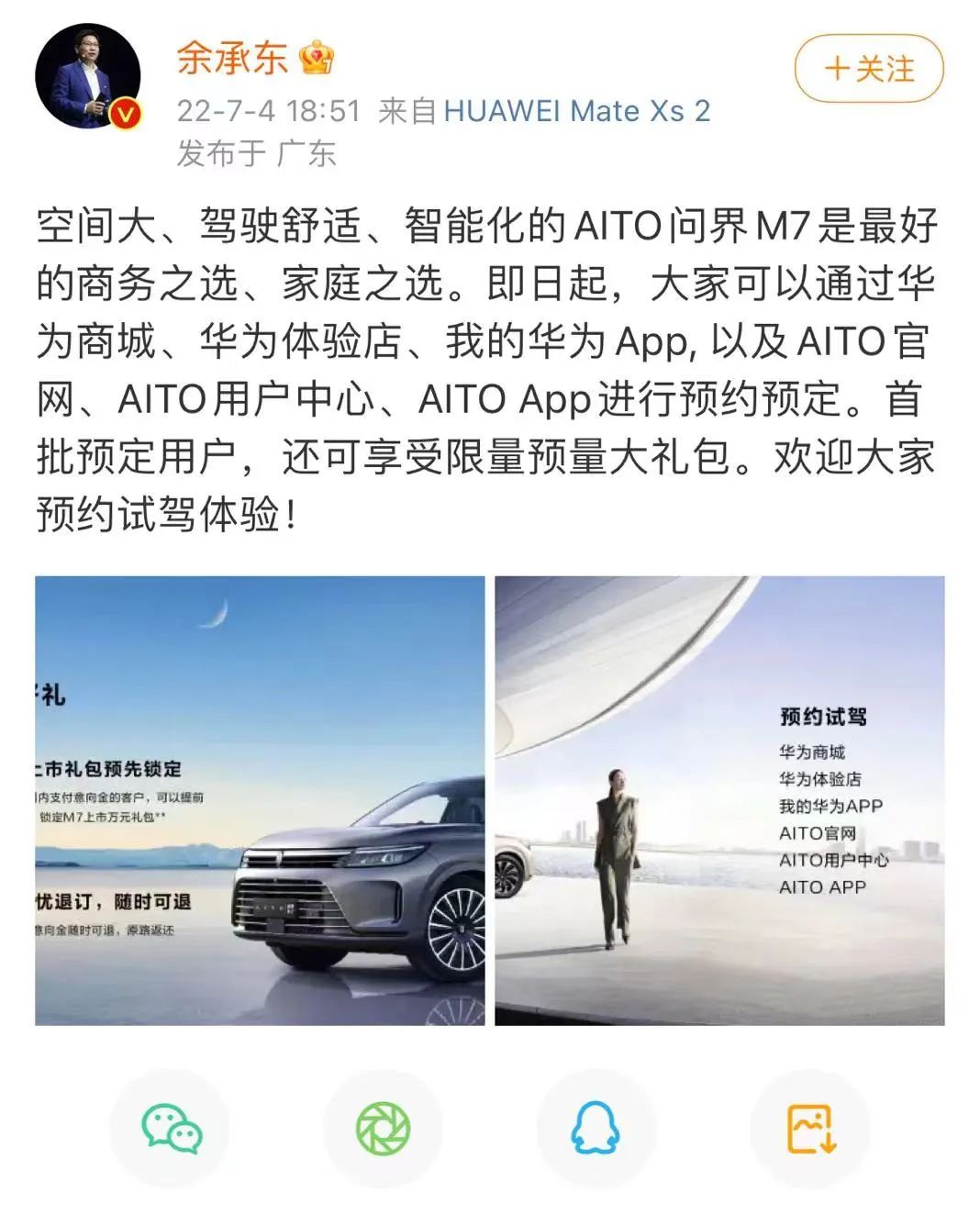 “在华为和赛力斯发挥各自优势共同赋能下,AITO品牌创造了新品牌单车型最快交付破万的记录,6月份单月大定破万再创新高,已经成为成长最快的智能电动汽车品牌。”余承东表示:“随着问界M7的到来,将有更多人体验到AITO带来的全新智慧出行体验。”