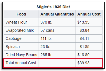 这听起来当然不是最美味的饮食,但一年只需 39.93 美元。有趣的是,按照今天的价格,它大约是 831 美元。