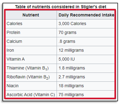 约束是对这些决定的限制。在饮食问题上,斯蒂格勒有以下营养限制。