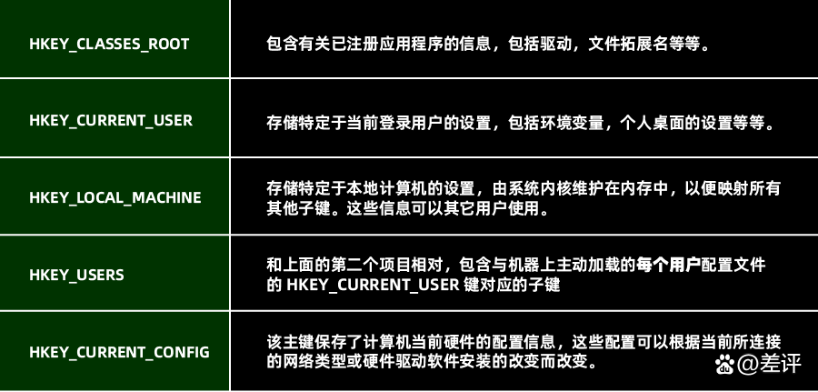 这里简单的介绍一下,这注册表最上层的五个分类,都是一些什么功能。