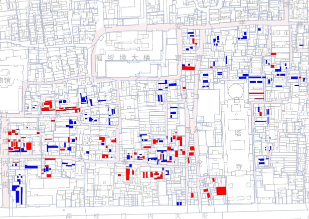 但是其由于历史上完全由明代朝天宫焚毁后百姓自发建设形成,自身物质空间形态较南锣鼓巷、烟袋斜街等历史文化街区存在一定差距,空间矛盾更加突出。又由于历史变革、发展政策变化等因素,各类矛盾日益激化,逐渐成为城市发展中的落后区域,并陷入恶性循环,产生了一系列的空间体系、社会结构、管理机制等问题。