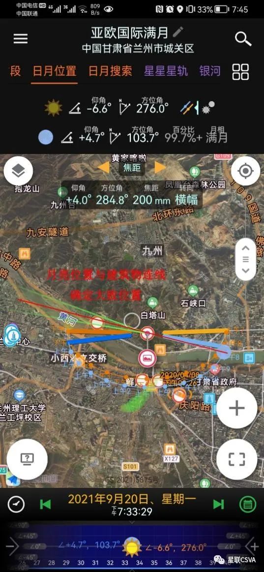 2.利用巧摄APP查看目标日月位置,确定大致拍摄方向