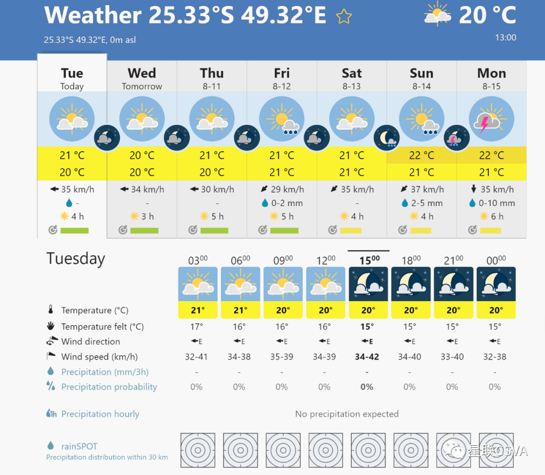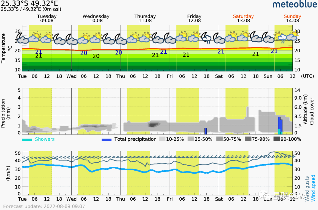 最下方的图则反应了风速的大小,注意风速过大的时候视宁度会下降,同时体感温度较低,拍摄时需格外注意。