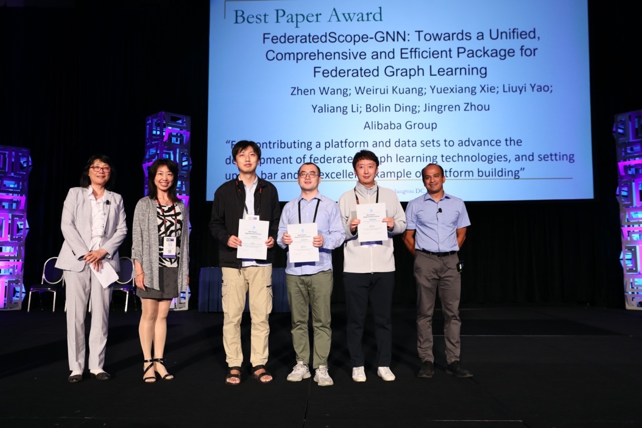 本次阿里巴巴获奖论文《FederatedScope-GNN: Towards a Unified, Comprehensive and Efficient Package for Federated Graph Learning》聚焦联邦学习中需求广泛且技术复杂的联邦图学习方向,针对现有框架及算法库对图数据支持有限的情况,提出了包含丰富数据集及创新算法的易用平台,为该领域后续研究奠定坚实基础。相关技术允许不同机构在充分保护各自隐私数据的前提下,联合进行新药分子性质预测、知识图谱补全、金融信息交互等工作,在科研及工业场景中具有广阔应用前景。