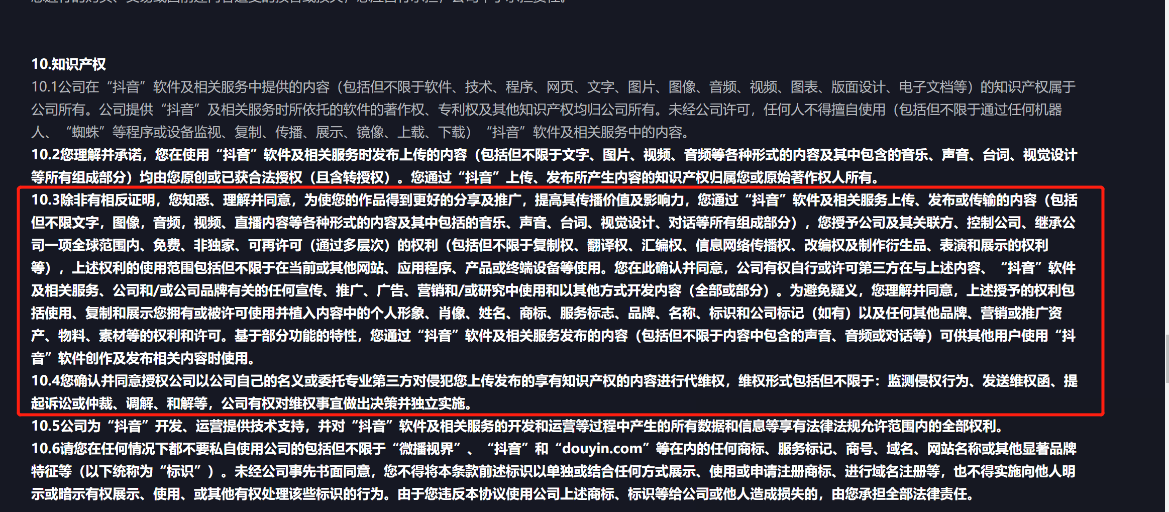 当然不是所有平台都是这么“霸道”,有些还是可以商量的,前提也是您得了解短视频平台有“服务协议”。所以朋友们,“亡羊补牢,为时不晚”啊。入驻平台之前问问律师,看看如何避免损失。