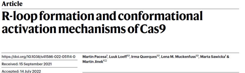 2022年8月24日,来自瑞士苏黎世大学的Martin Jinek实验室在Nature发表题为R-loop formation and conformationalactivation mechanisms of Cas9的论文。文章利用冷冻电镜对CRISPR-Cas9系统R-loop形成的机制进行了全面系统的分析,并揭示了Cas9核酸酶活化的结构基础,这为降低脱靶改善CRISPR-Cas9系统的安全性提供了新的见解。