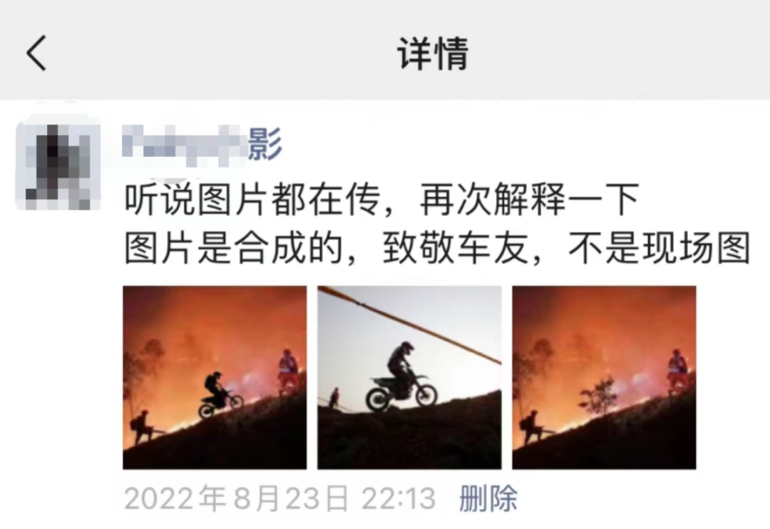 她表示,制作这张图片的初衷只是想通过艺术的方式为“前线”的车友打气,纪念“摩托车”在此次山火救援中起到的作用。