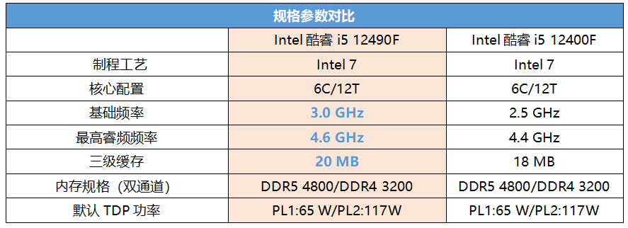 目前用第12代酷睿i5 + B660主板装机的玩家很多,特别是酷睿i5 12400/F系列,确实称得上是核心主力,它们相对上代酷睿i5 11400/F在性能和规格方面都有巨大的提升,价格却差异不大,性价比确实很高。不过,Intel其实还为喜欢高频率的玩家推出了一款更具吸引力的“专供U”:酷睿i5 12490F,它和酷睿i5 12400F相比基础频率提升了500MHz、最高睿频提升了200MHz,同时三级缓存也增加了2MB。很明显,更高的频率会带来更快的响应速度和执行效率,所以在性能方面它是比酷睿i5 12400F高出一截的。不过,尽管酷睿i5 12490F规格更高,但它的实际到手价与酷睿i5 12400F相差不多,性价比的确相当给力。