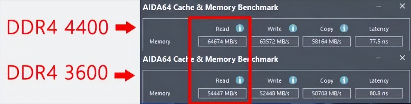 第12代酷睿i5的最佳搭档当然是B660主板,而B660主板的一大特点就是不但有支持DDR4和DDR5的两个版本,还支持内存超频,让玩家可以享受发烧级的高频内存,获得更快的响应速度和更高的执行效率。例如酷睿i5 12490F搭配高性价比的B660 DDR4主板,可以选择主流的DDR4 3600内存,也可以超频或直接购买DDR4 4000以上的高频内存。从测试数据可以看到,酷睿i5 12490F搭配双通道DDR4 4400内存,读取速度高达64674 MB/s,比双通道DDR4 3600高出约19%!如果玩家预算允许,给酷睿i5 12490F + B660主板的组合搭配超频性能更好或者本身XMP频率就更高的内存,还可以发挥出这套平台更多的潜力。