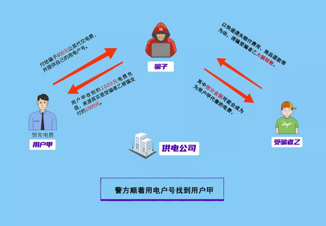 这样一进一出之间,骗子将诈骗而来的赃款“洗白”。以优惠价格购买到电费充值服务的群众,却因贪图便宜,成了帮助骗子“洗钱”的帮凶。你将面临警察上门、家里被停电、补缴电费等。