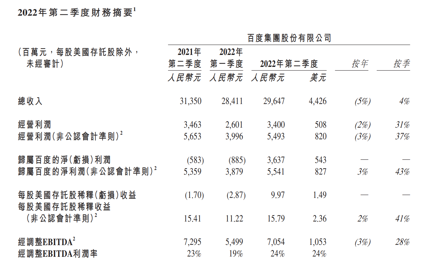“第二季度,百度核心的非公认会计准则下的经营利润率为22%,较第一季度17%有所上升。”百度首席财务官罗戎说,百度将致力于降本增效,寻求健康可持续的高质量收入增长和商业模式。