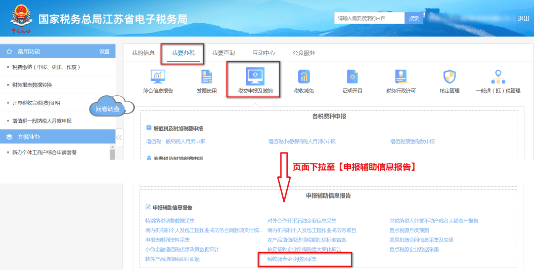 江苏税收调查数据采用互联网直报方式上报,无需提供纸质报表。纳税人可以通过登录电子税务局进行填报。
