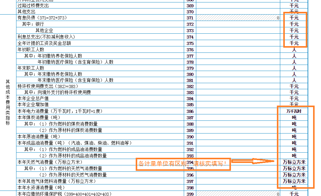 税收调查报表的货币金额均为千元,与您惯用的万元表或角分表区别较大,填报时务必准确转换计量单位,避免因数据偏差造成不必要的返工。与此同时,油、气、电等消费量指标单位分别是吨、万标立方米和万千瓦时等单位,要注意区分。