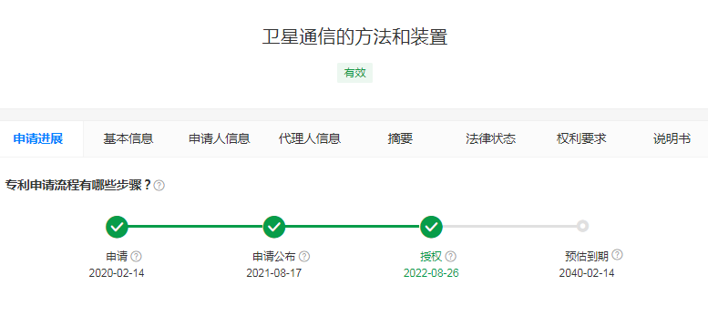 登陆天眼查搜索可以发现,华为于8月26日这一天,被授权了一项名为“卫星通信的方法和装置”这一专利。根据描述,这项专利技术可以在提高卫星通信性能的前提这下,降低终端设备的能耗以及通信复杂度。