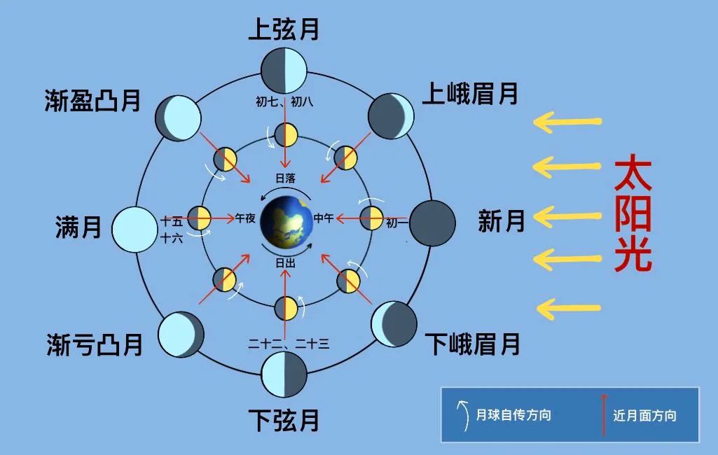 我们大家现在都知道,月球上没有嫦娥,没有玉兔,本身更是连发光都不会,只能把照射在它上面的一部分太阳光反射过来。也正是因为这样,位于地球上的我们才能随着太阳、月球、地球这三个相对位置的变化,观测到不同形状的月球。