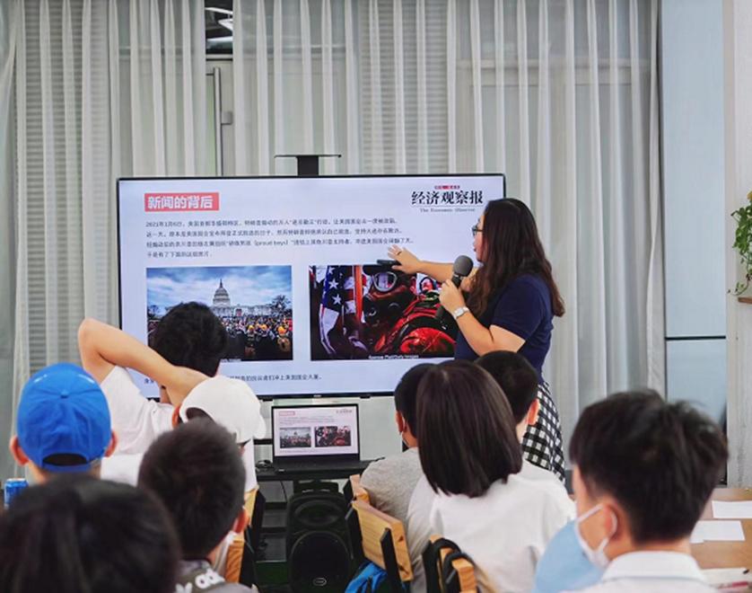 在老师的引导下,巨沐凡从记者角度分析时代背景、采访取材、编辑逻辑等,了解到一篇好的新闻是如何产生的。