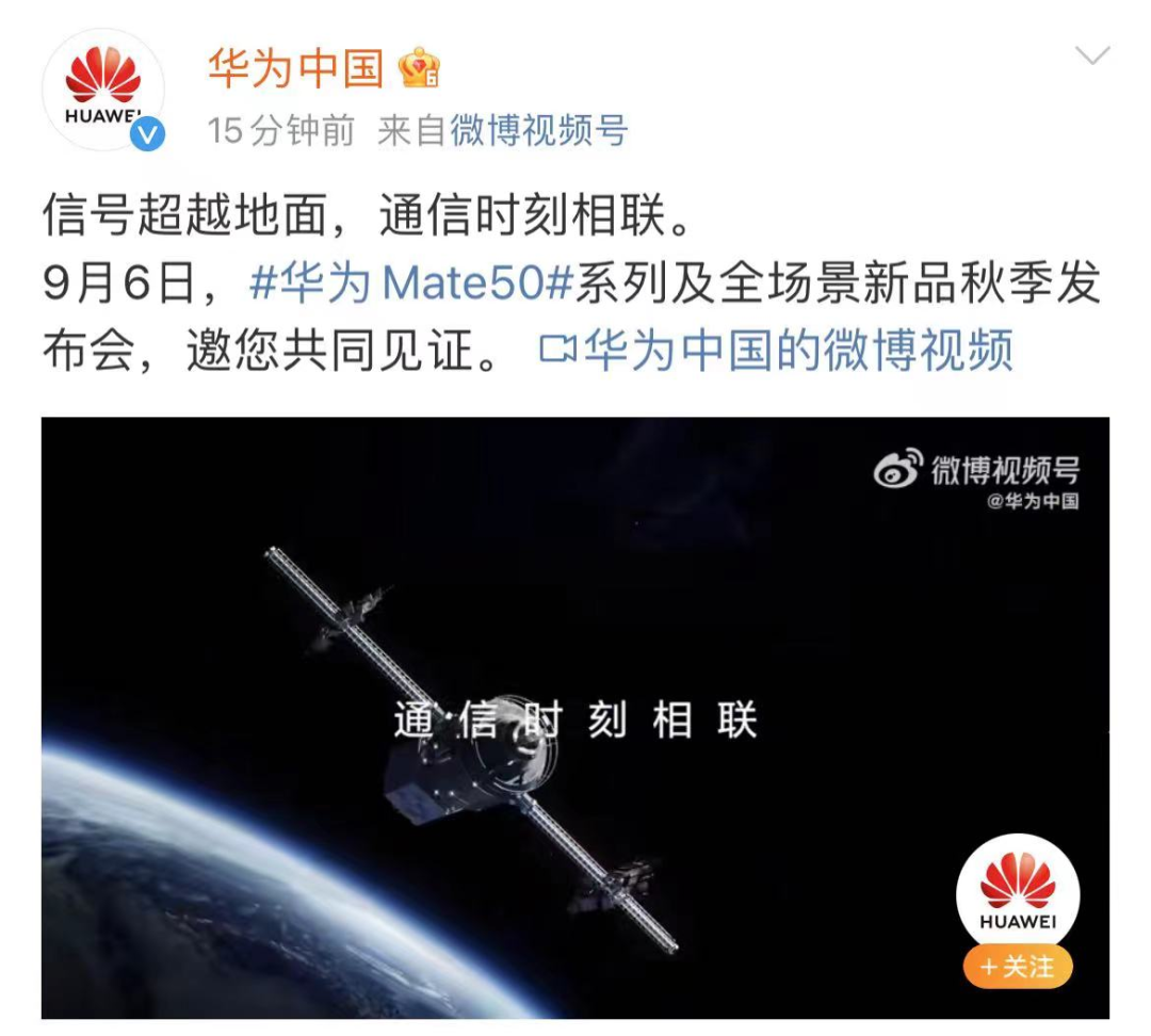 刚刚,华为官方再次发布预热视频,暗指该技术为卫星通信。