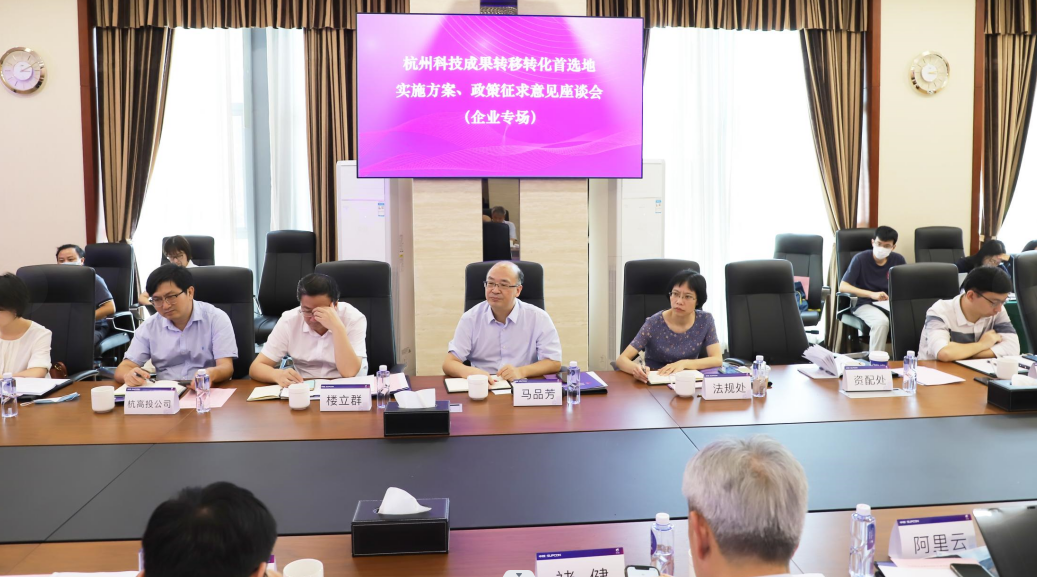 座谈会上,杭州市科技局成果转移转化首选地专班成员还听取了对于如何构建更利于企业成果转移转化的生态构建的建议。如高校成果如何能让企业用得上,真正把企业高校嫁接在一起?能否由政府主导,把投资阶段迁移,在还是项目的阶段对成果进行,在之后的成果转移转化也能够获得收益,能不能这么干?龙头企业对于概念验证之都如何打造有没有一些思考?