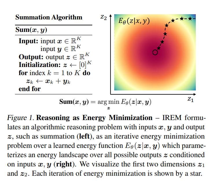 深度学习在图像分类和物体识别等复杂的模式识别任务中表现出色。然而,它很难处理需要困难推理的任务,比如算法计算。人类能够通过迭代推理来解决这样的任务——花更多的时间来思考更难的任务。然而,大多数现有的神经网络都表现出由神经网络体系结构控制的固定计算开销,从而阻止了对更难的任务进行额外的计算处理。在这项工作中,我们提出了一个新的框架迭代推理与神经网络。我们训练一个神经网络,将所有输出的能量参数化,并将迭代推理的每一步作为能量最小化步骤来实现,以找到最小能量解决方案。通过将推理作为一个能量最小化问题,对于导致更复杂的能量景观的更难的问题,我们可以通过运行一个更复杂的优化程序来调整我们的潜在计算预算。我们的经验表明,我们的迭代推理方法在图和连续域可以解决更精确和可泛化的算法推理任务。最后,我们说明了我们的方法可以递归地解决需要嵌套推理的算法问题。可以在https://energy-based-model.github.io/iterativereasoning-as-energy-minimization/上获得代码和其他信息。