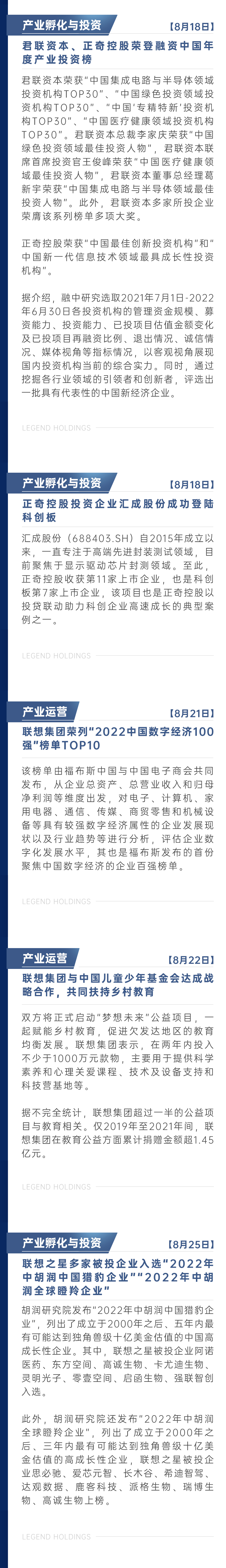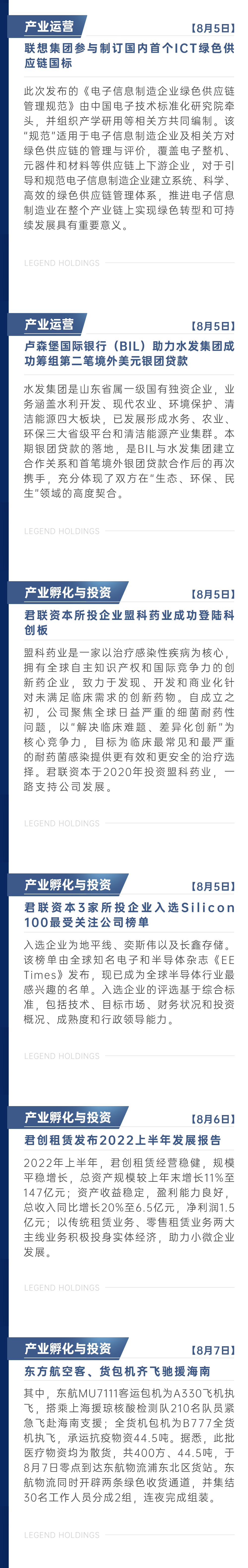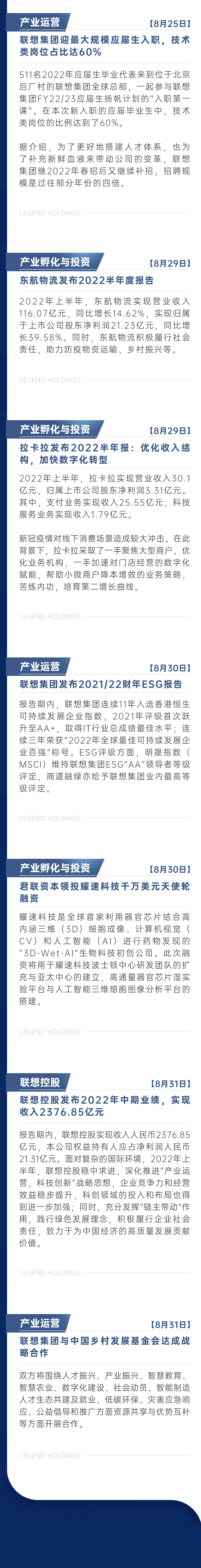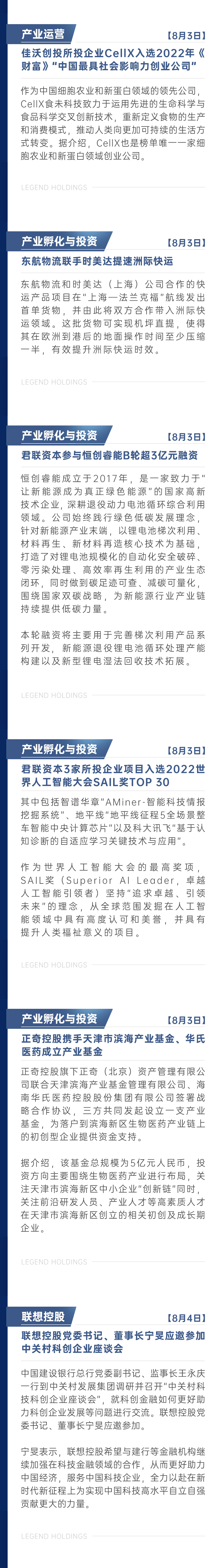 联想控股8月新闻简报