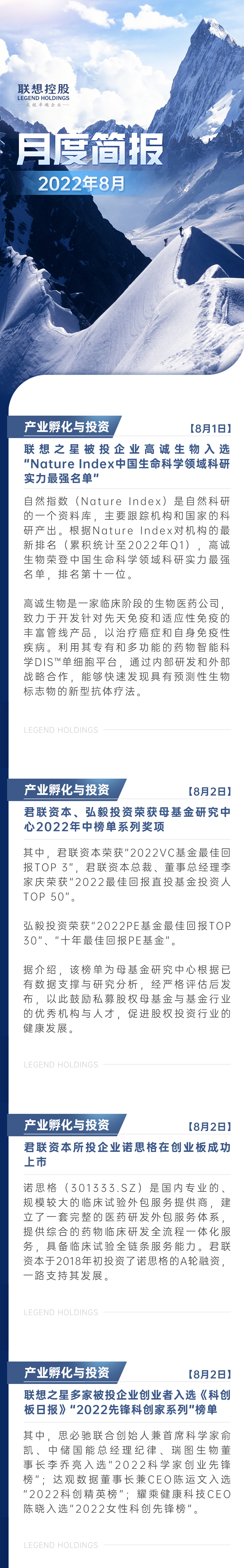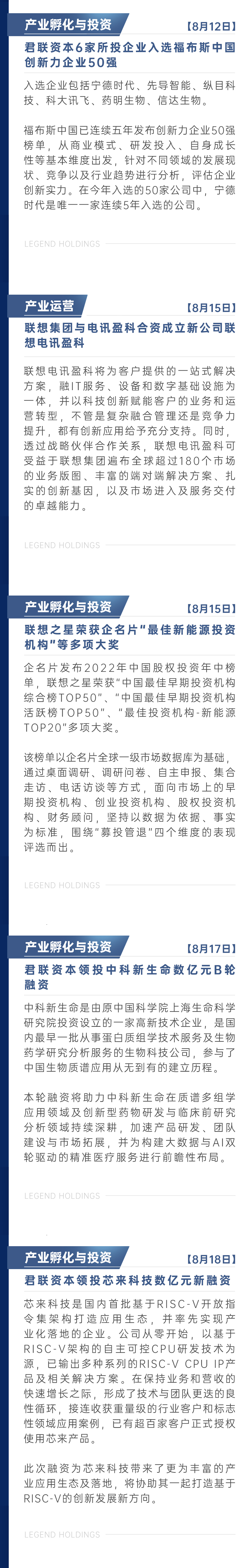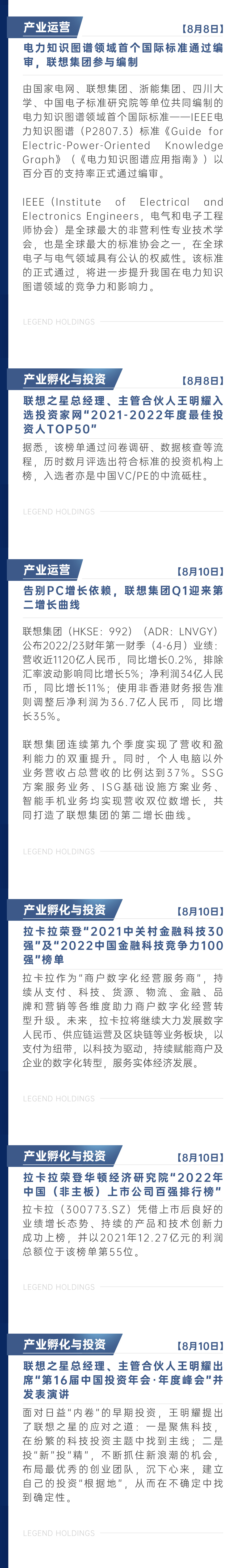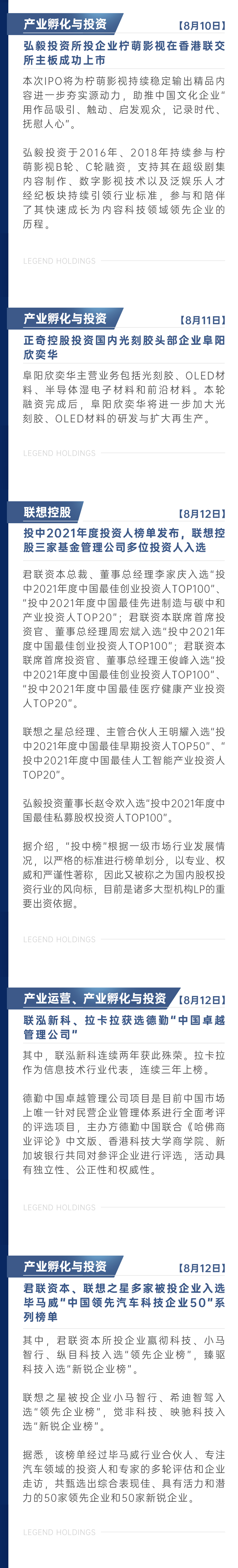联想控股8月新闻简报